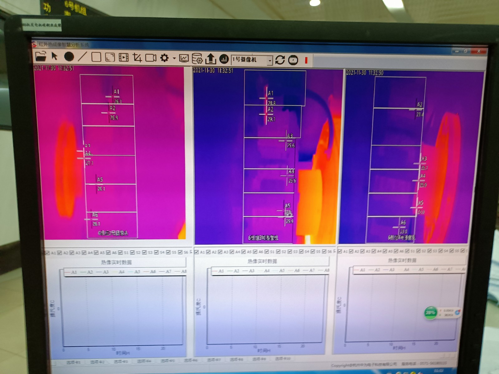 2021年11月,浙江浙能溫州發(fā)電有限公司5、6號發(fā)電機(jī)合計完成增補(bǔ)安裝發(fā)電機(jī)碳刷紅外監(jiān)測熱像儀4套,畫面清晰穩(wěn)定,溫度監(jiān)控精準(zhǔn);并將現(xiàn)場溫度報警傳入DCS控制系統(tǒng)中,更好的監(jiān)測碳刷運(yùn)行情況。