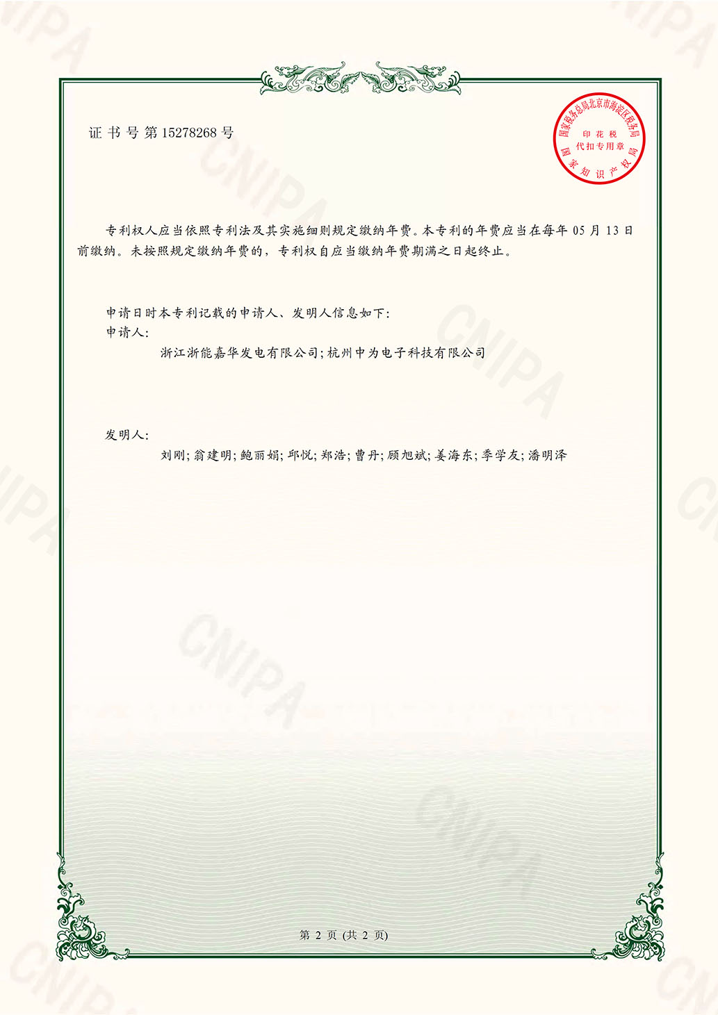 2021年12月24日,杭州中為電子科技有限公司與浙江浙能嘉興發(fā)電有限公司聯(lián)合研發(fā)的科技項(xiàng)目“發(fā)電機(jī)碳刷在線測(cè)溫系統(tǒng)”成功申請(qǐng)專利“發(fā)電機(jī)碳刷紅外熱成像分析系統(tǒng)”"發(fā)電機(jī)碳刷在線監(jiān)測(cè)系統(tǒng)“